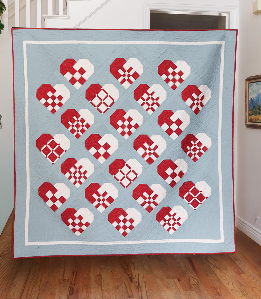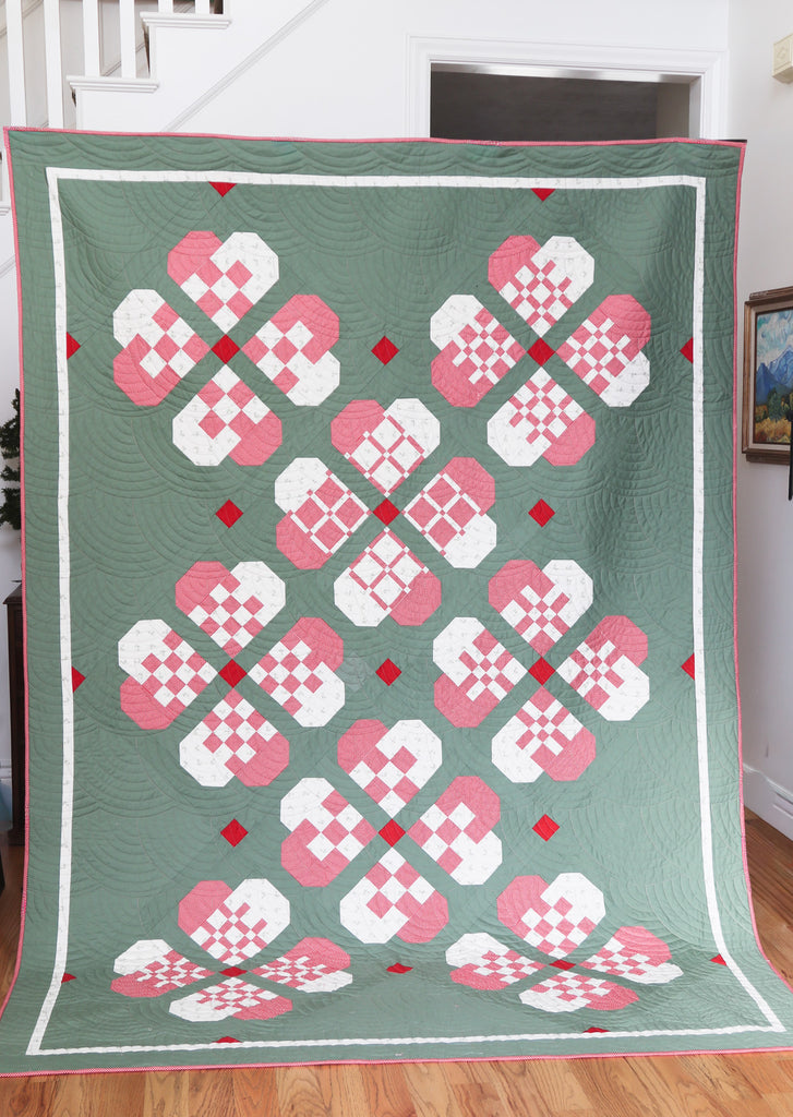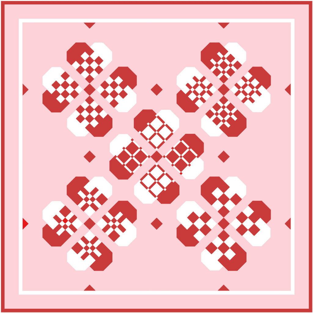 Version 2 features 8 different heart blocks laid out in giant 4-patch Clover style blocks.